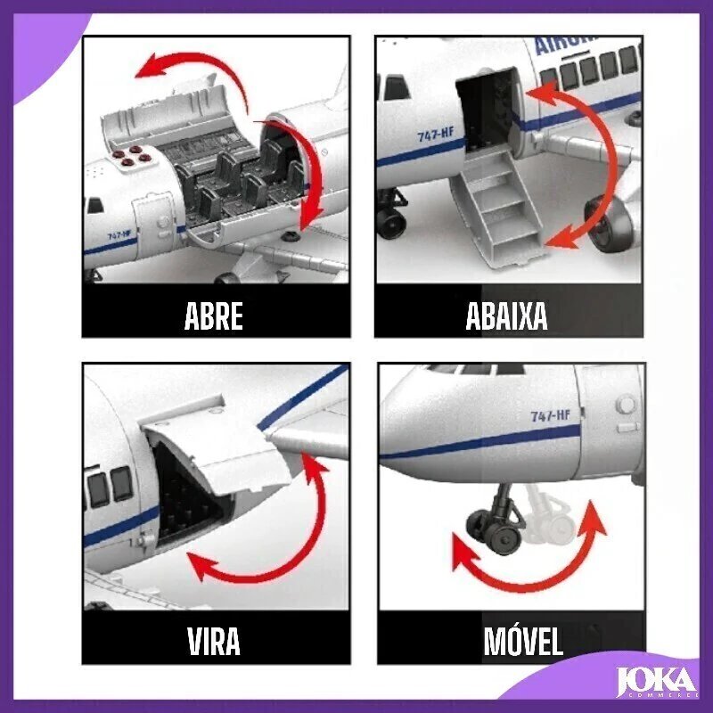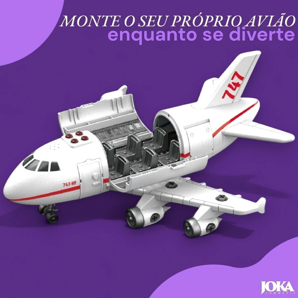 O Avião de montar é um brinquedo educativo que permite às crianças desenvolverem habilidades manuais e cognitivas enquanto se divertem. A caixa possui um QR CODE com o manual de instruções, siga para montar o avião. O avião possui luzes e som, que simulam uma decolagem real.
