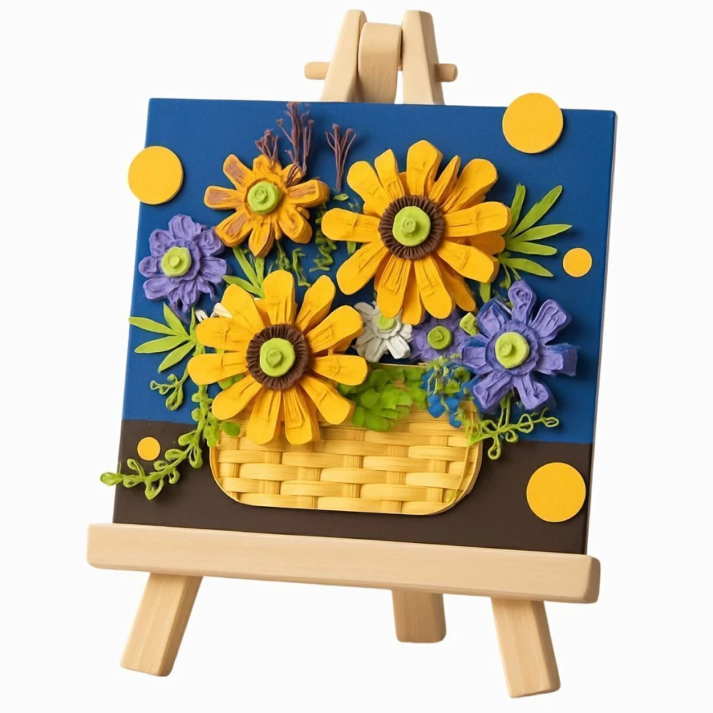 Este quadro de blocos girassóis é um brinquedo encantador e educativo que une construção, criatividade e arte! Com 922 peças para montar, ele permite que as crianças criem uma linda paisagem com girassóis e exibam seu trabalho em um cavalete incluso.
