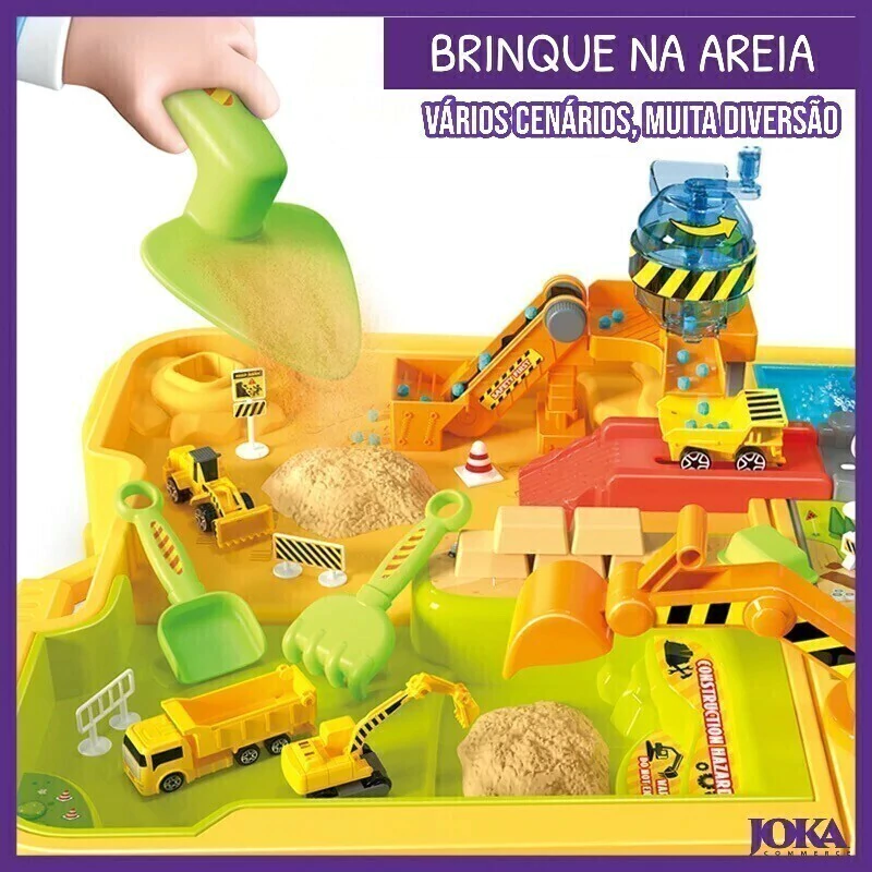 A Maleta de Aventura na Engenharia é o brinquedo perfeito para crianças a partir de 3 anos que amam construção e desafios criativos. Com um design prático, em formato de maleta, este conjunto completo oferece a oportunidade de brincar com areia e água, tornando a diversão ainda mais envolvente e interativa. O conjunto inclui caminhões de construção, guindaste manual, escavadeiras e muito mais. A criança pode controlar o guindaste, movimentar materiais e explorar diferentes áreas do canteiro de obras, desenvolvendo habilidades motoras e a coordenação olho-mão.