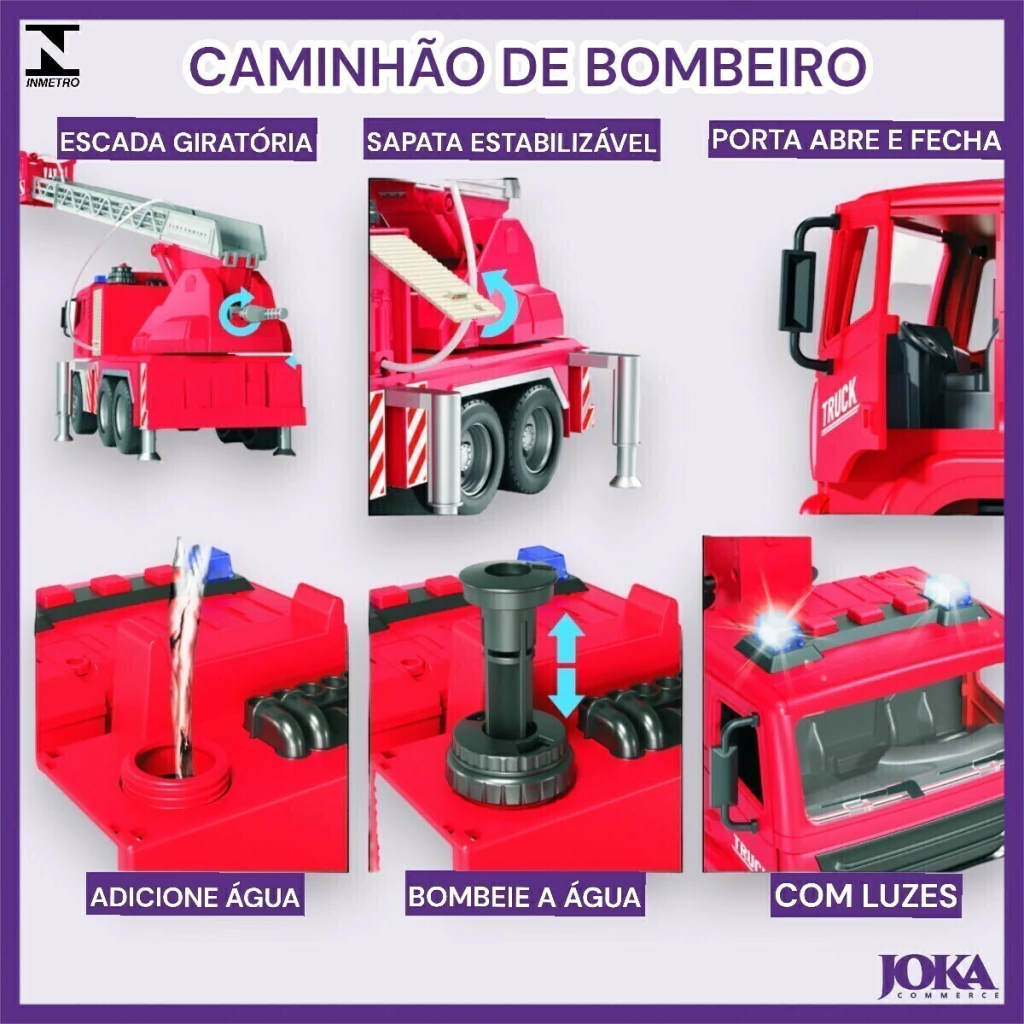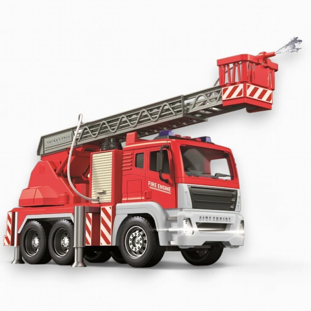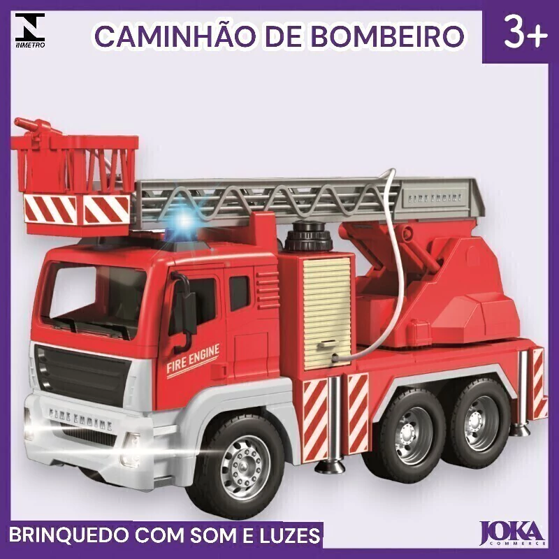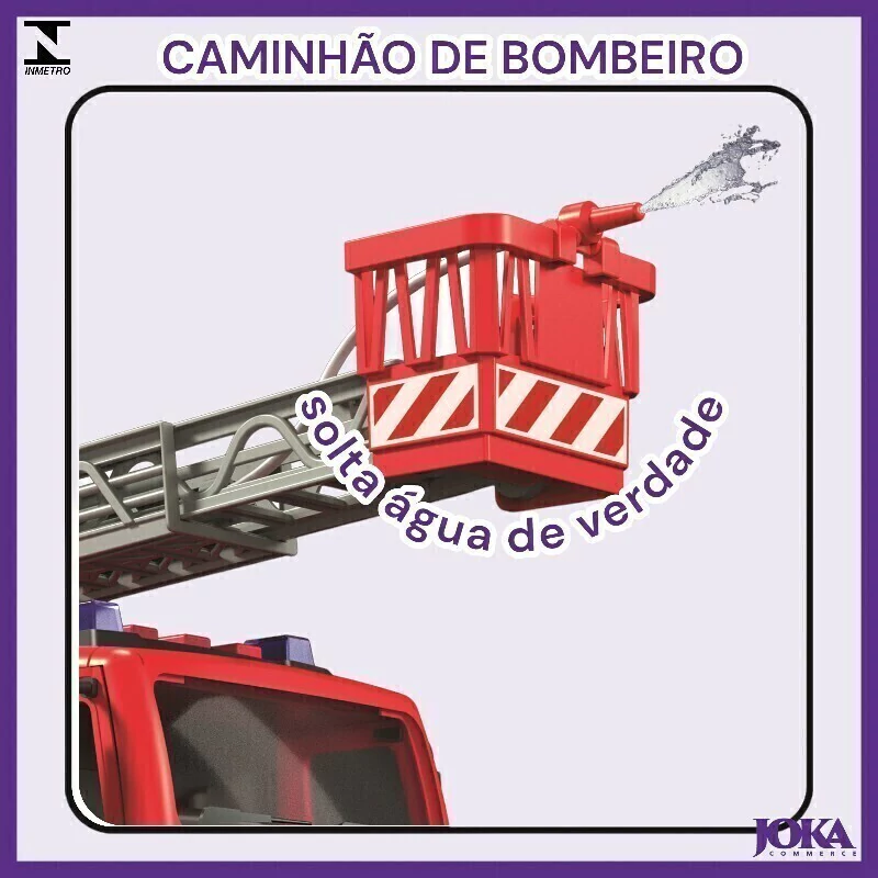 Este caminhão possui uma aparência realista, com mangueira que sai água de verdade, escada telescópica e cabine com porta abre e fecha. É equipado com luzes e sons que simulam uma verdadeira missão de resgate.