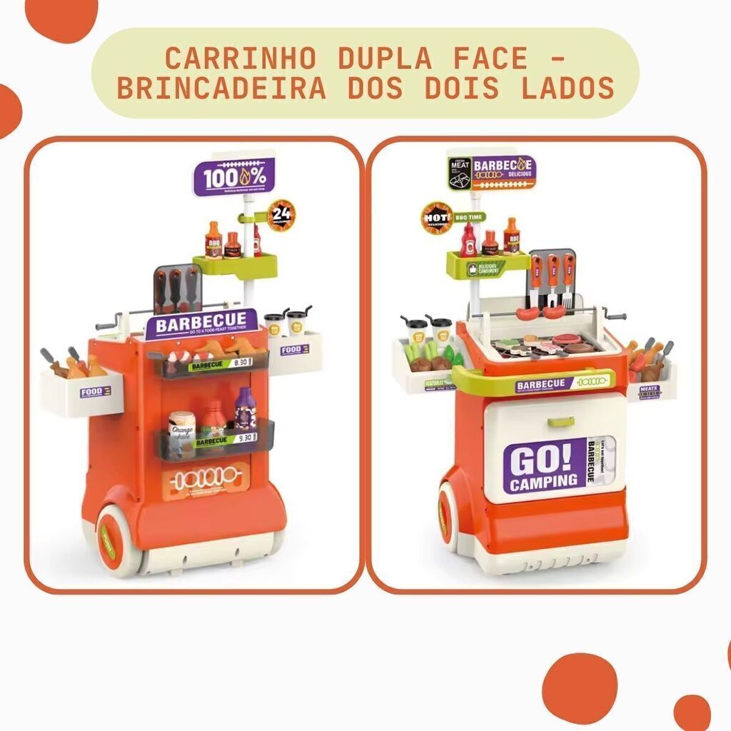 Esse carrinho de churrasco infantil é o brinquedo ideal para transformar qualquer brincadeira em uma grande confraternização. Conta com função de vapor real, efeitos de luz e som, além de diversos acessórios temáticos como espetos, carnes, molhos e utensílios. Um cenário perfeito para estimular a imaginação e a diversão dos pequenos.
