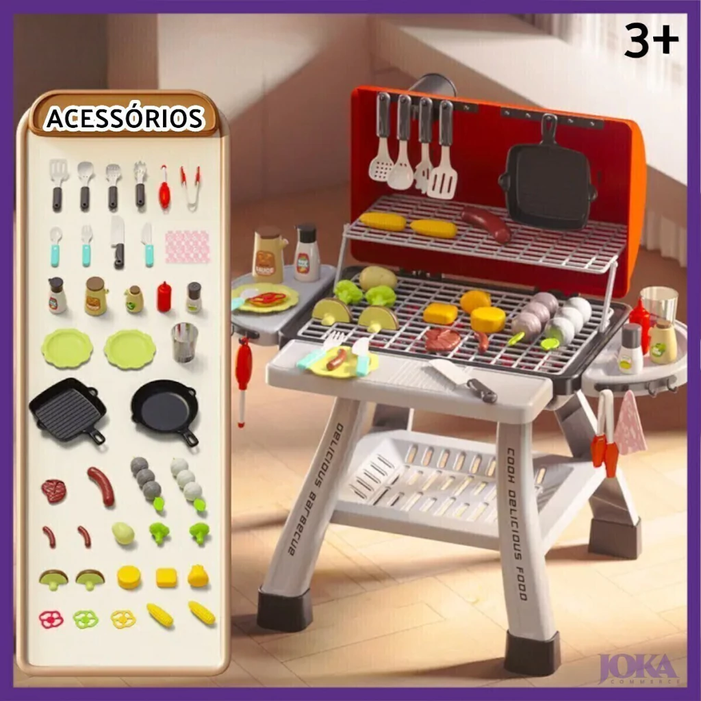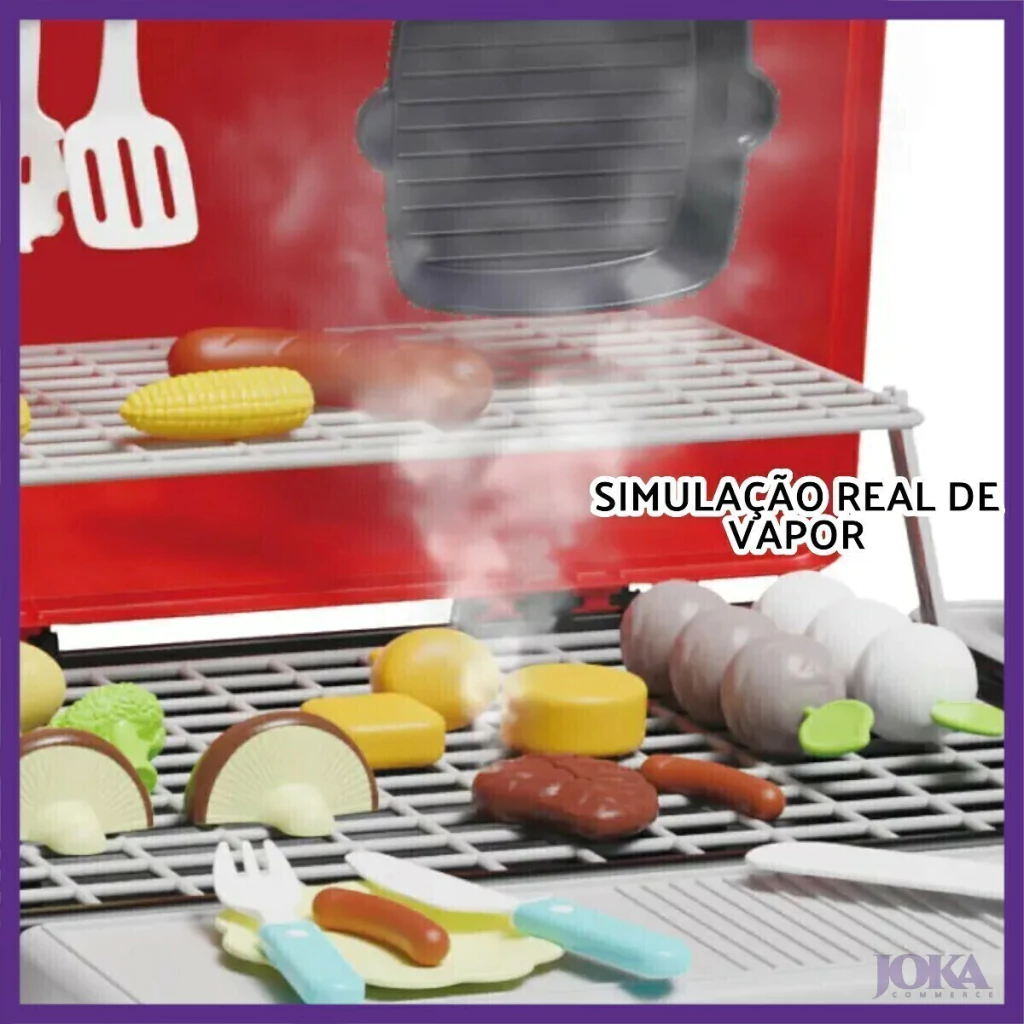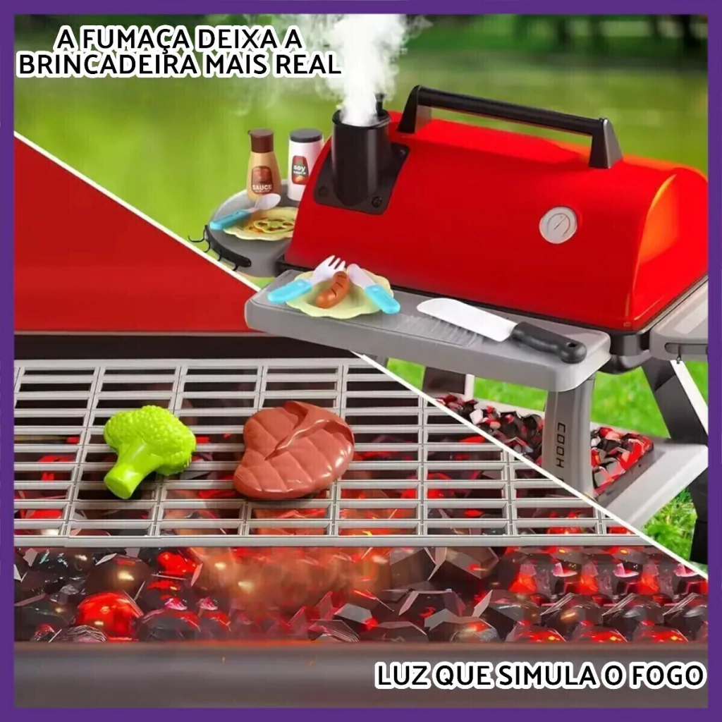 - Simula um churrasco completo com grelhas, panelas e utensílios;