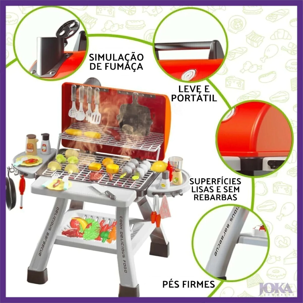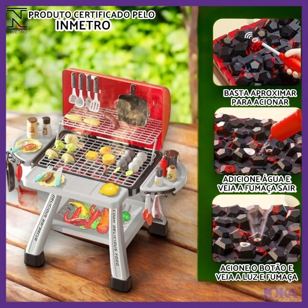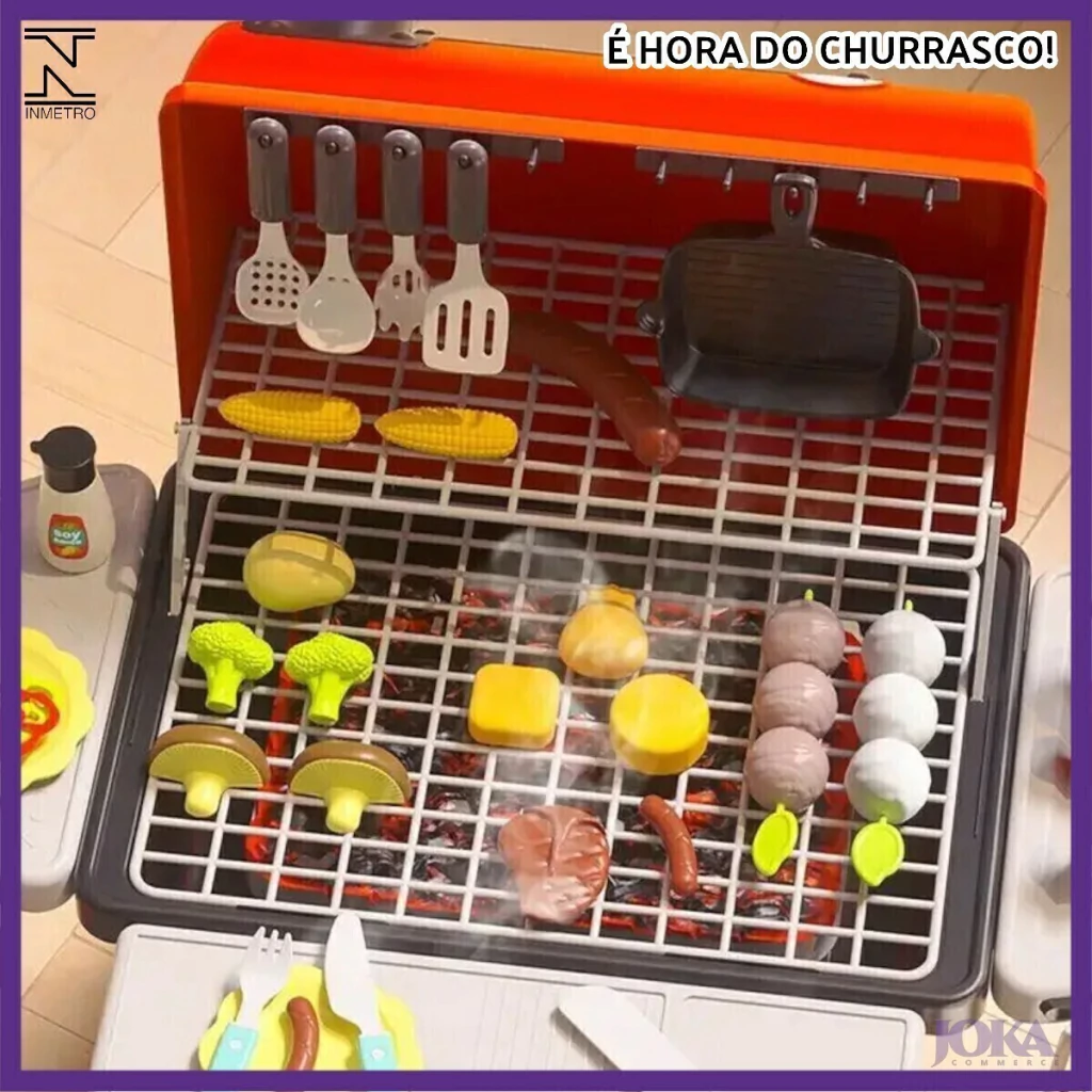 - Simula um churrasco completo com grelhas, panelas e utensílios;