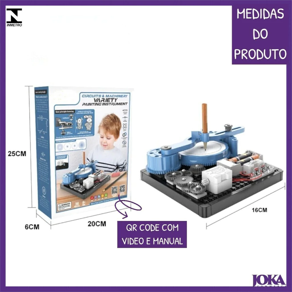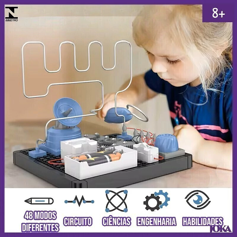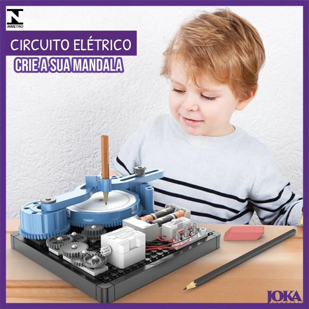O Brinquedo combina diversão com aprendizado, ideal para crianças a partir de 8 anos. Você pode escolher entre o Circuito Elétrico, que ensina princípios básicos de eletrônica e engenharia, ou o Criador de Mandalas, que estimula a criatividade e a coordenação motora ao desenhar padrões incríveis. Ambos os produtos são projetados para desenvolver habilidades STEM (Ciência, Tecnologia, Engenharia e Matemática).