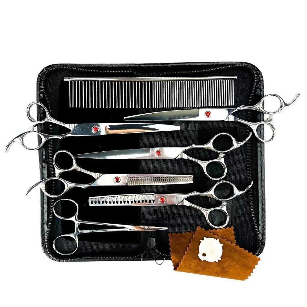 Esse kit de tesouras pode ser usado em seu pet shop para atender os clientes de maneira eficiente, feitas com um design que reduz a fadiga dos braços enquanto estiver em uso. Além disso, também é indicada para uso caseiro, para quem quer dar um toque especial no pelinho dos pets. Este conjunto é indicado para pessoas destras.