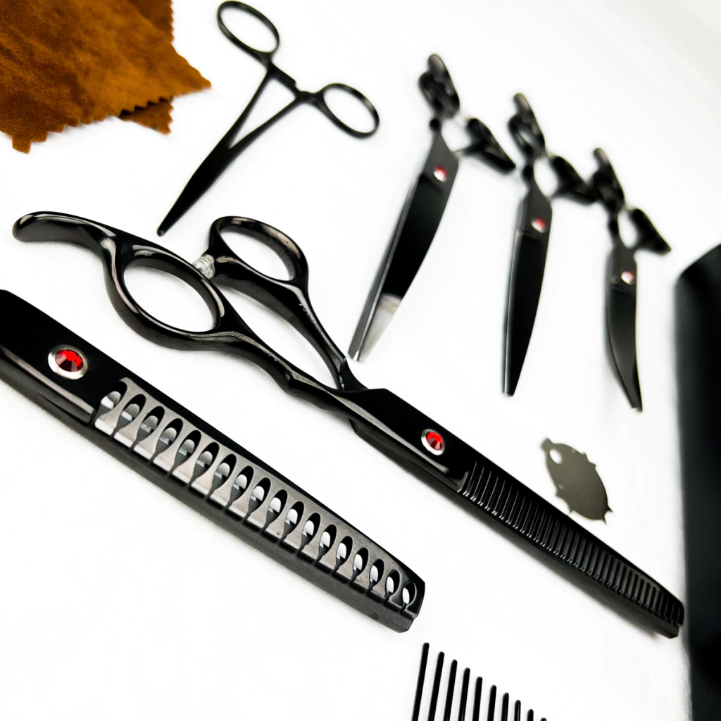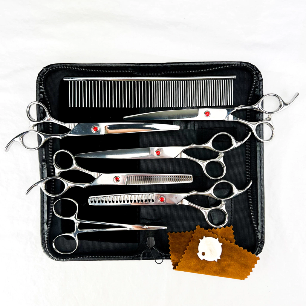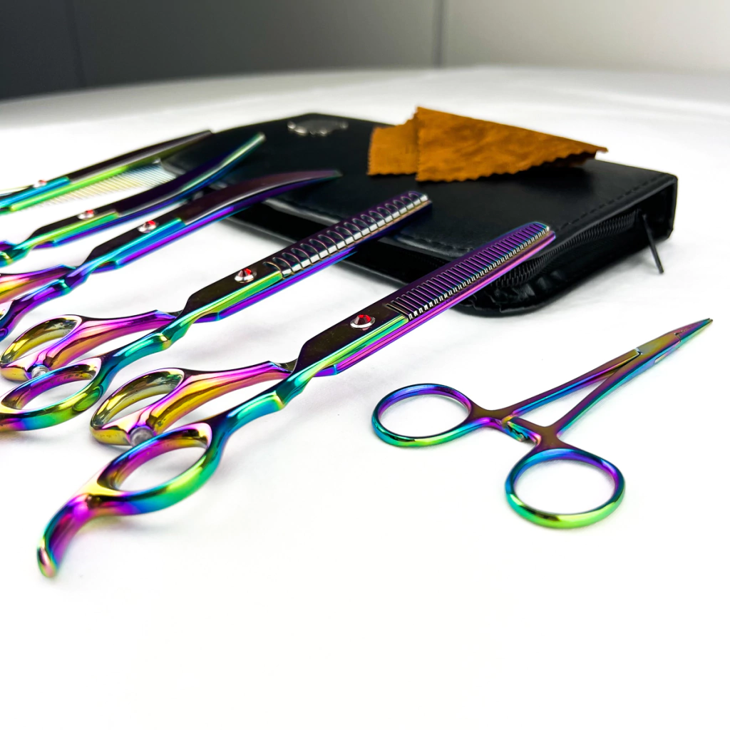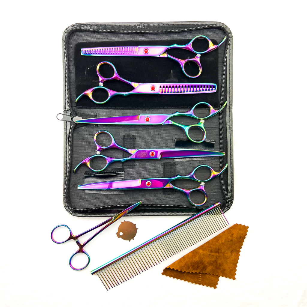 O conjunto de tesouras além de prático é muito bonito, as cores disponíveis são perfeitas para complementar o cantinho especial dos pets. Todos os itens são feitos com matéria prima japonesa de primeira linha, qualidade excelente!