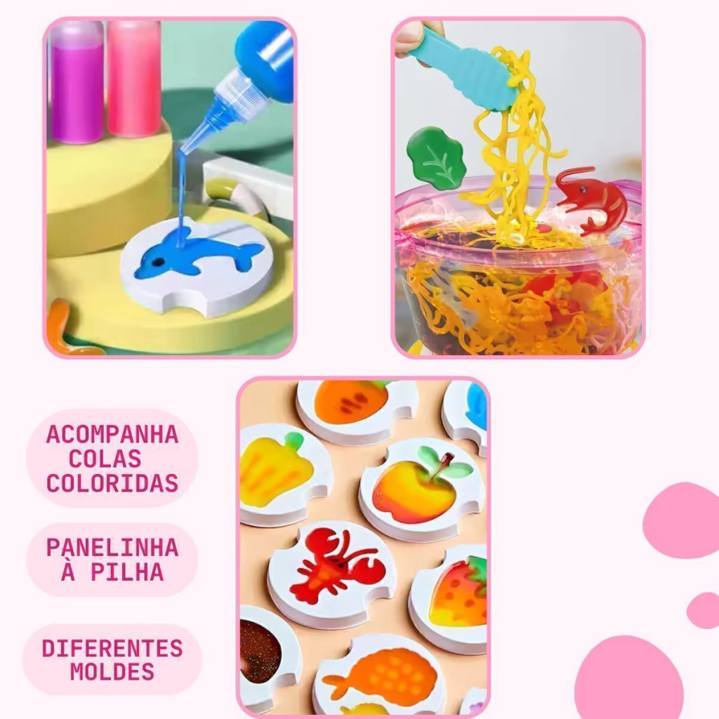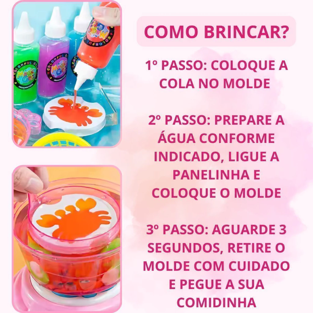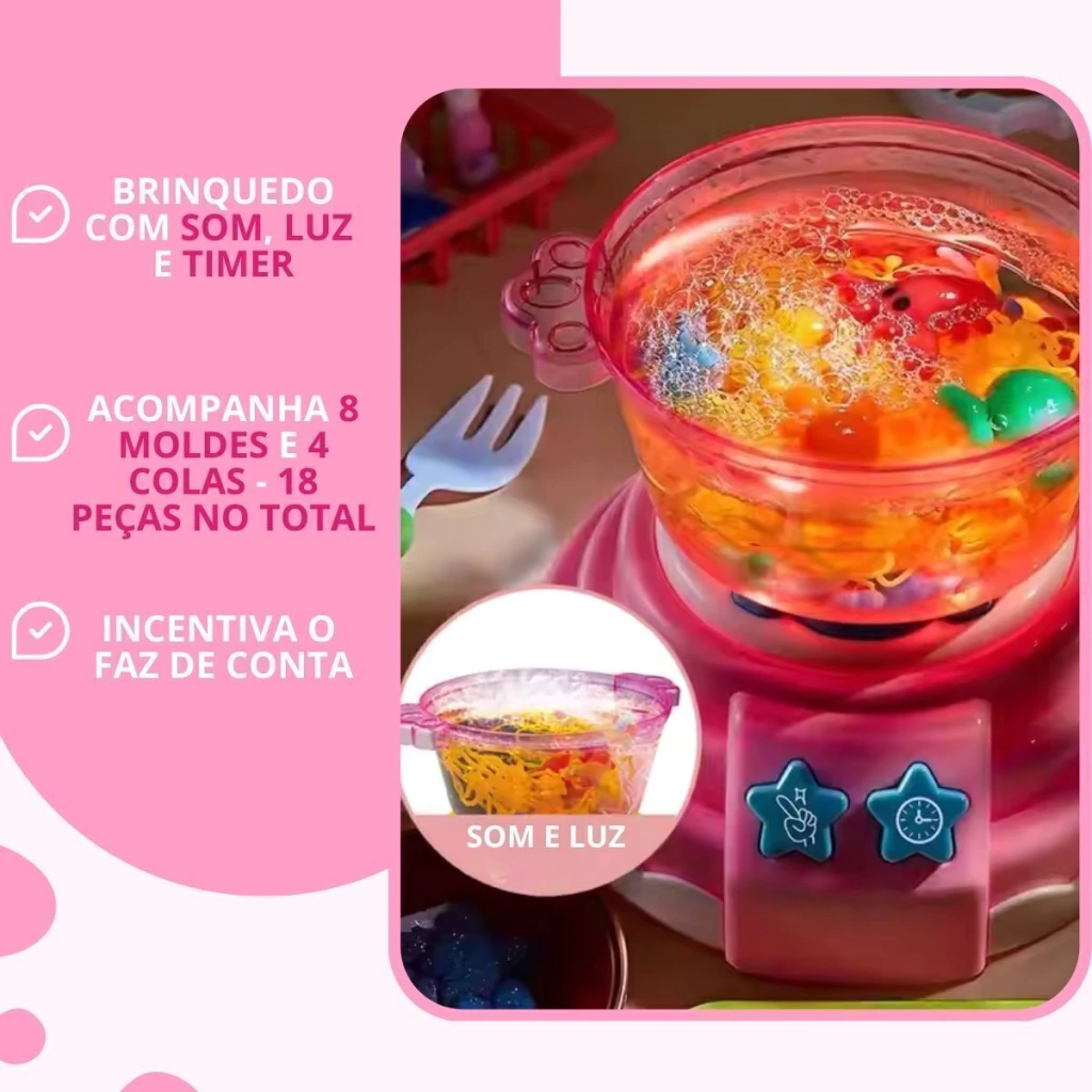 Com cores vibrantes e acessórios variados, as crianças podem montar diferentes pratos, estimular a imaginação e desenvolver habilidades motoras enquanto brincam.