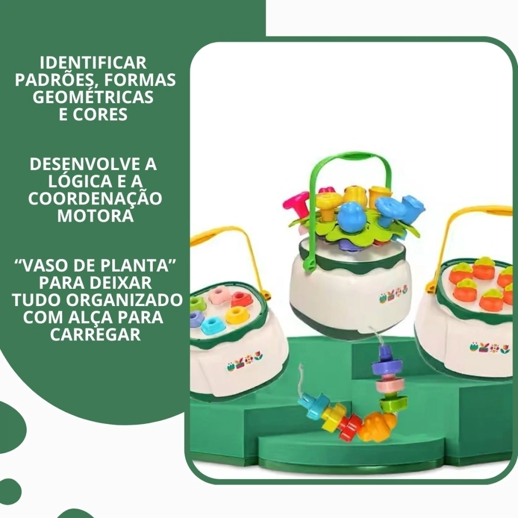 Este lindo jogo de encaixar flores estimula a imaginação, coordenação motora e criatividade das crianças. Com peças coloridas e fáceis de manusear, permite criar arranjos florais únicos, tornando o momento da brincadeira ainda mais divertido e educativo.