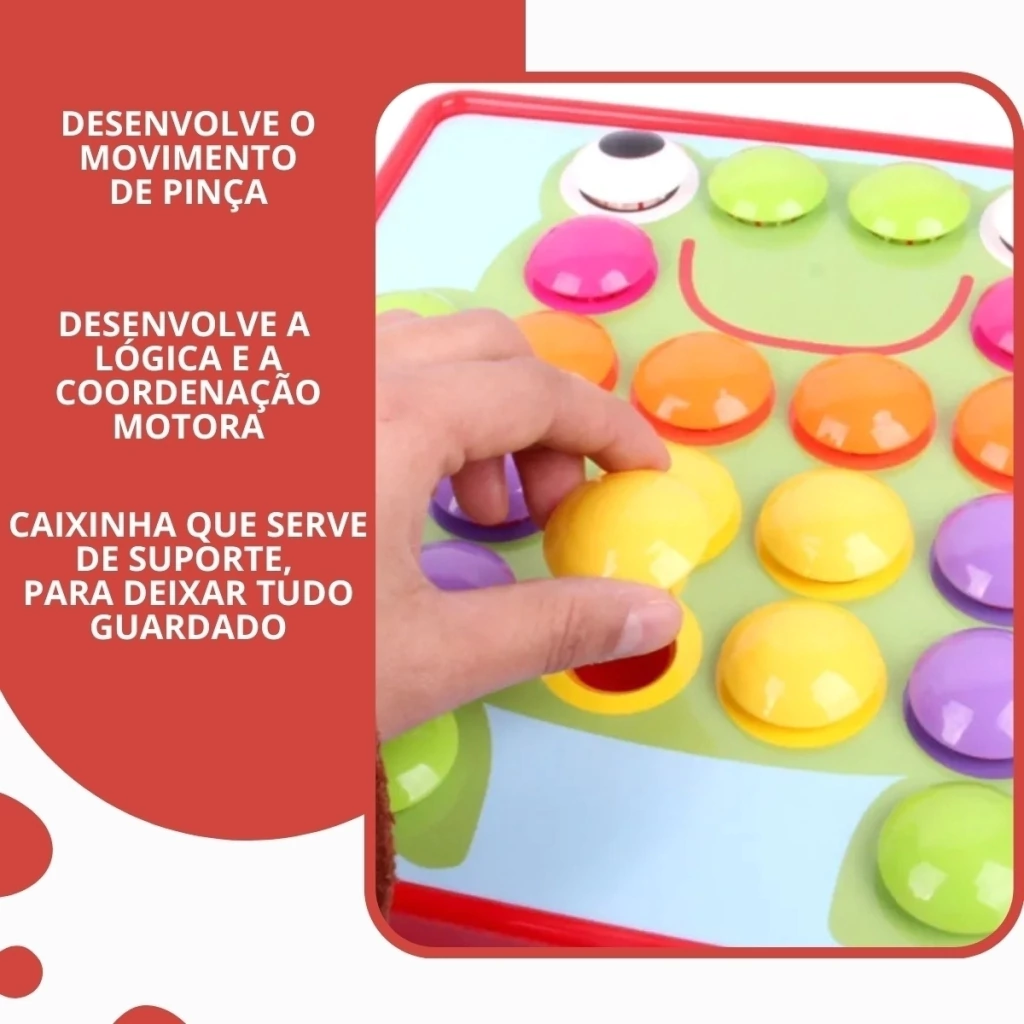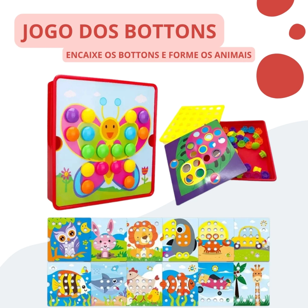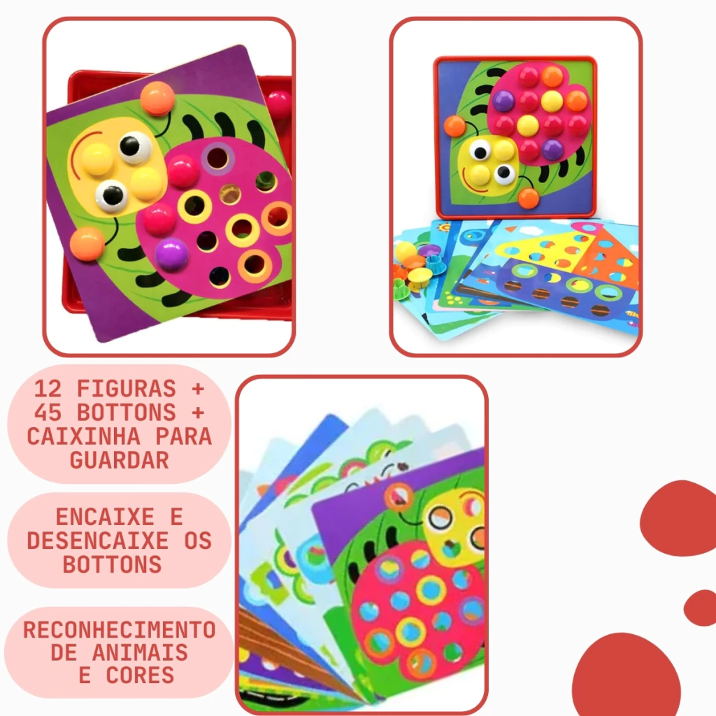 Com peças coloridas e fáceis de encaixe, esse brinquedo permite que a criança crie e monte diversas figuras dos desenhos que acompanham os botons, estimulando o raciocinio lógico e a coordenação motora de maneira educativa e divertida.