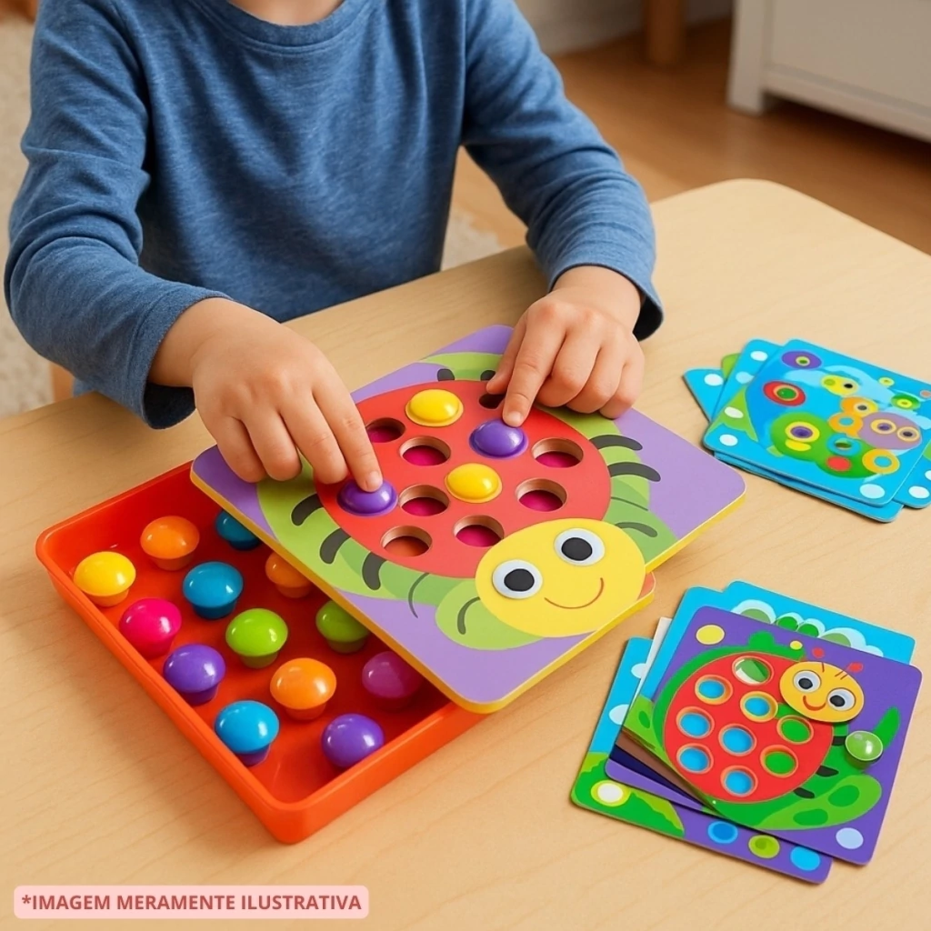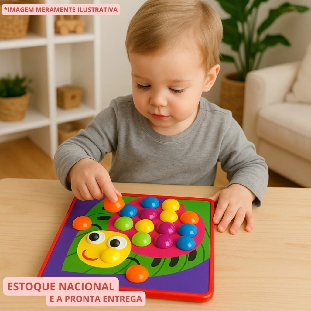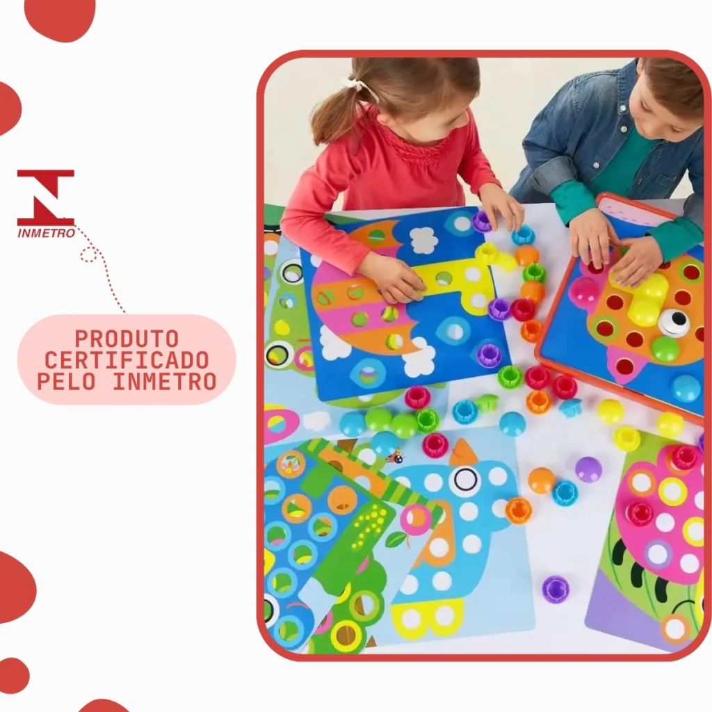 Com peças coloridas e fáceis de encaixe, esse brinquedo permite que a criança crie e monte diversas figuras dos desenhos que acompanham os botons, estimulando o raciocinio lógico e a coordenação motora de maneira educativa e divertida.
