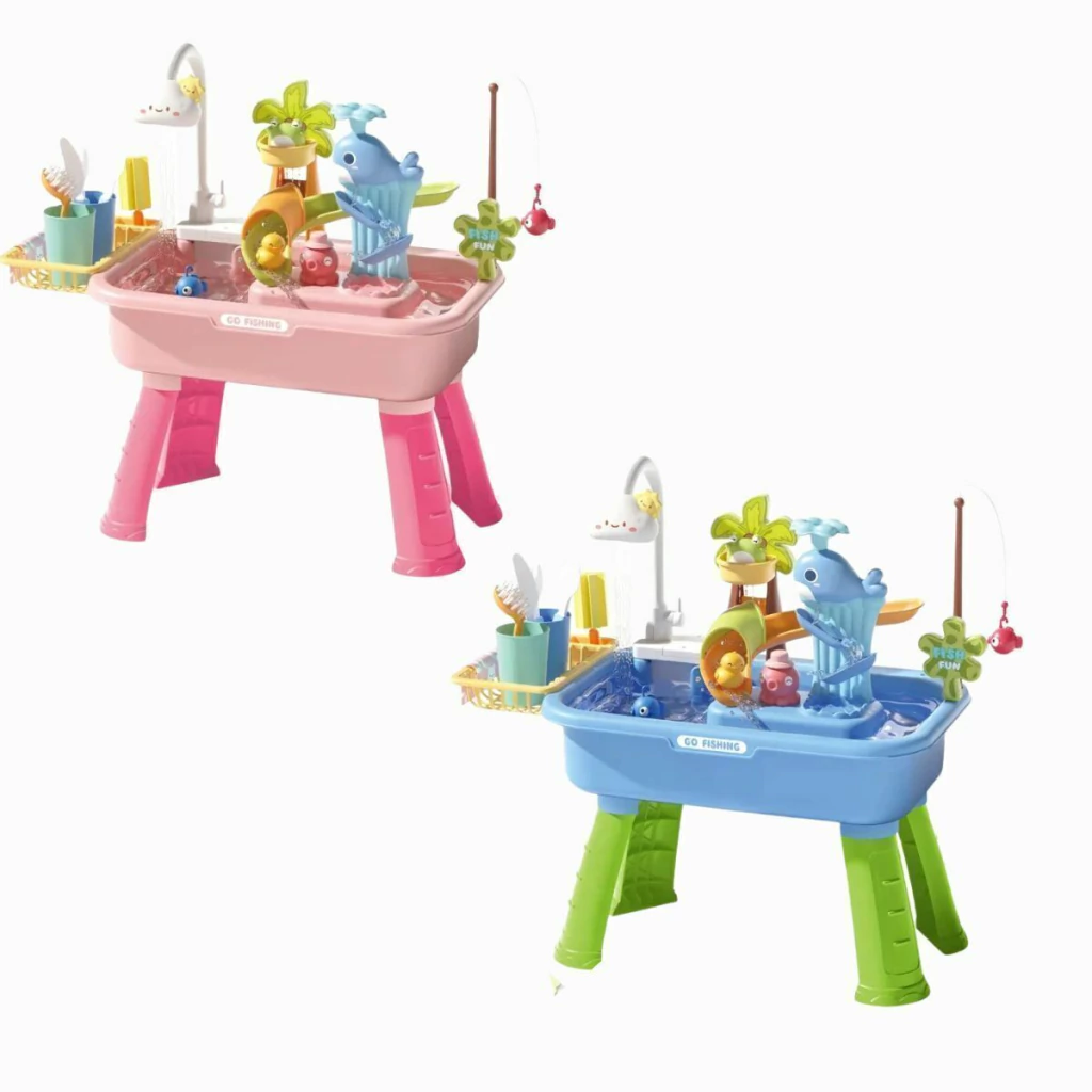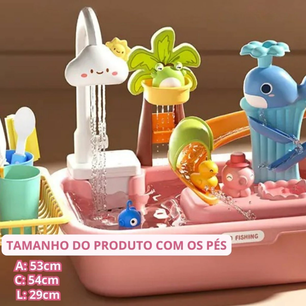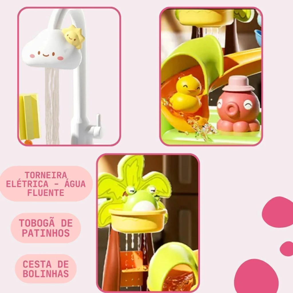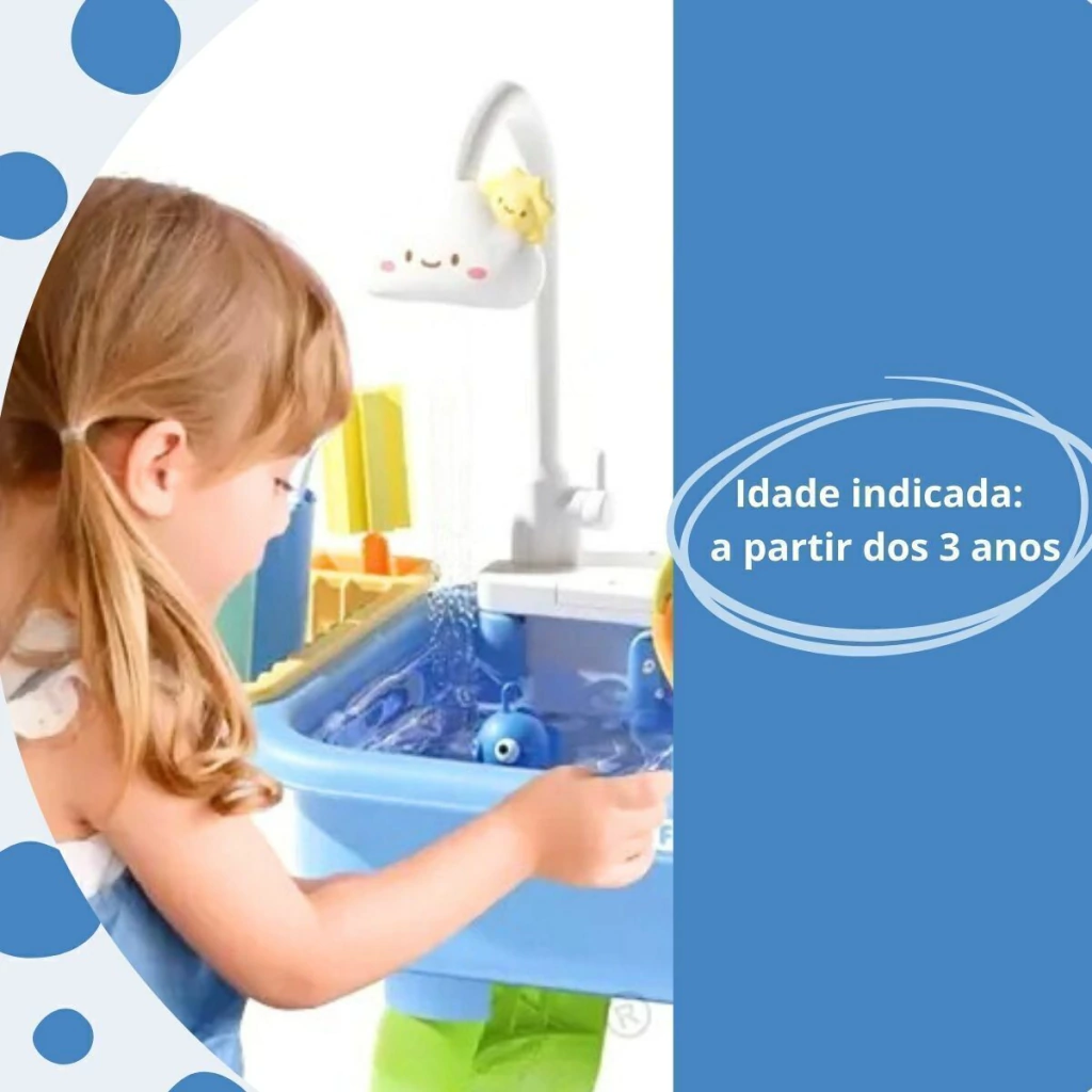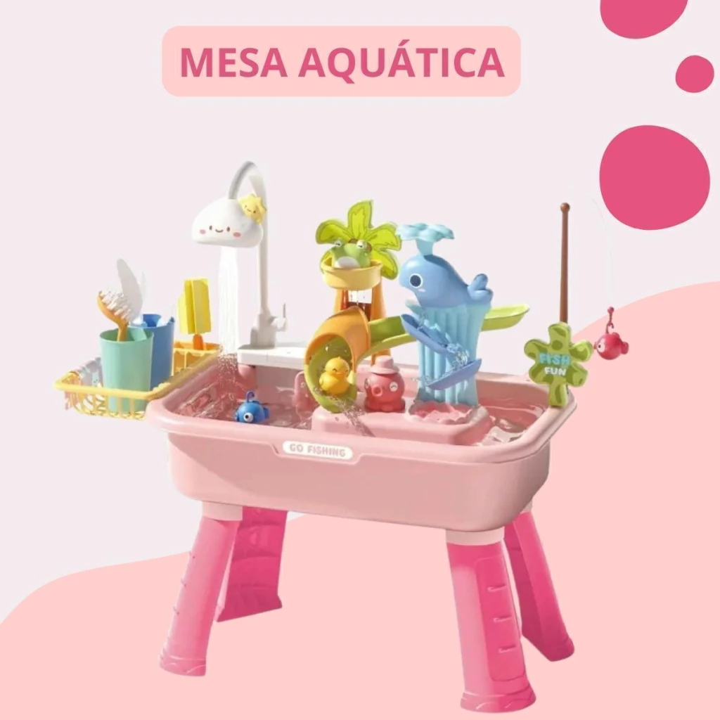 A Mesa Aquática Infantil 2 em 1 é diversão garantida para os pequenos! Pode ser usada com ou sem os pés, e vem equipada com torneira elétrica que jorra água de verdade, pescaria, tobogã de patinho e vários acessórios. Feita com plástico seguro e sem rebarbas, é ideal para estimular a coordenação motora, a criatividade e o faz de conta. Produto certificado pelo INMETRO e indicado para crianças a partir dos 3 anos. Disponível nas cores azul e rosa!