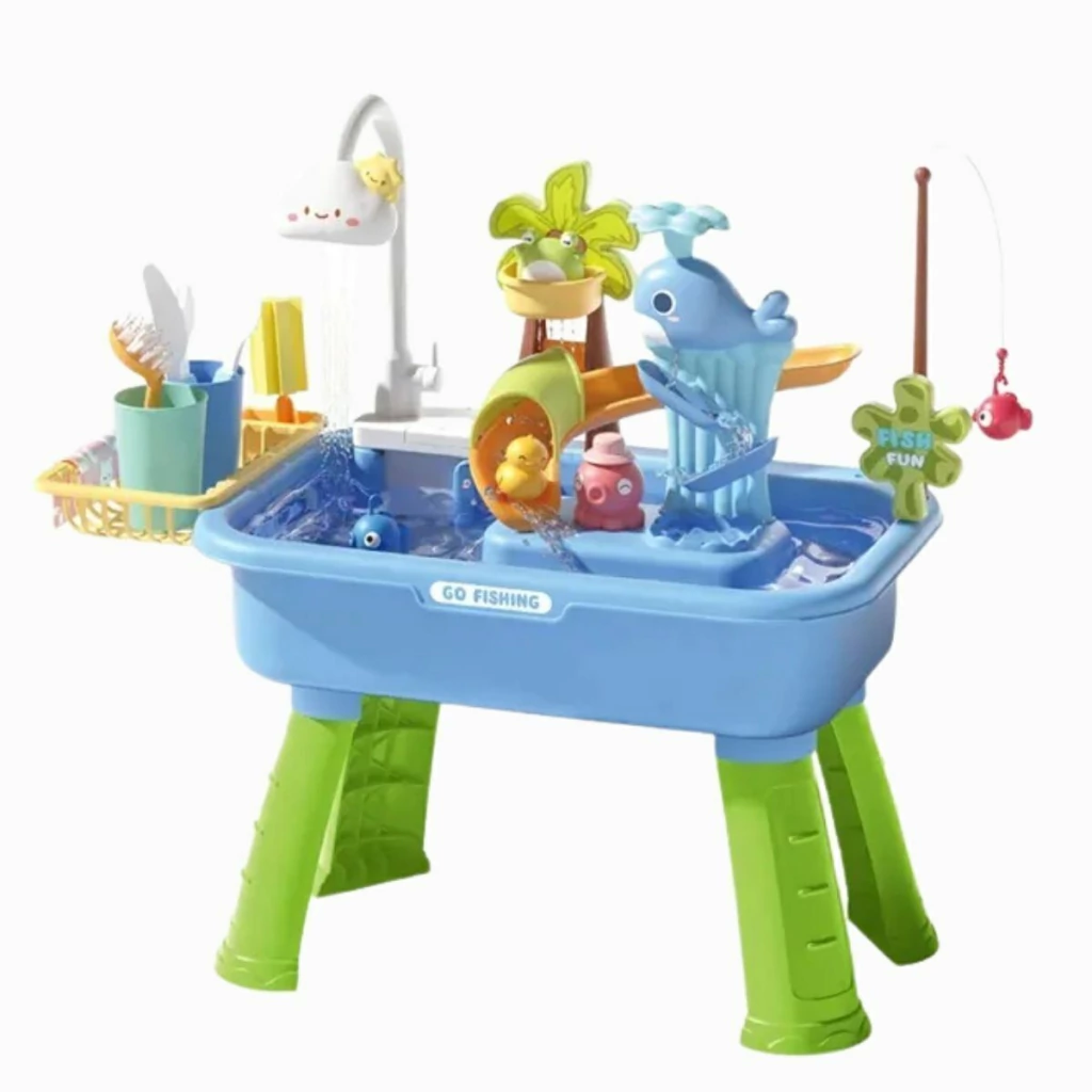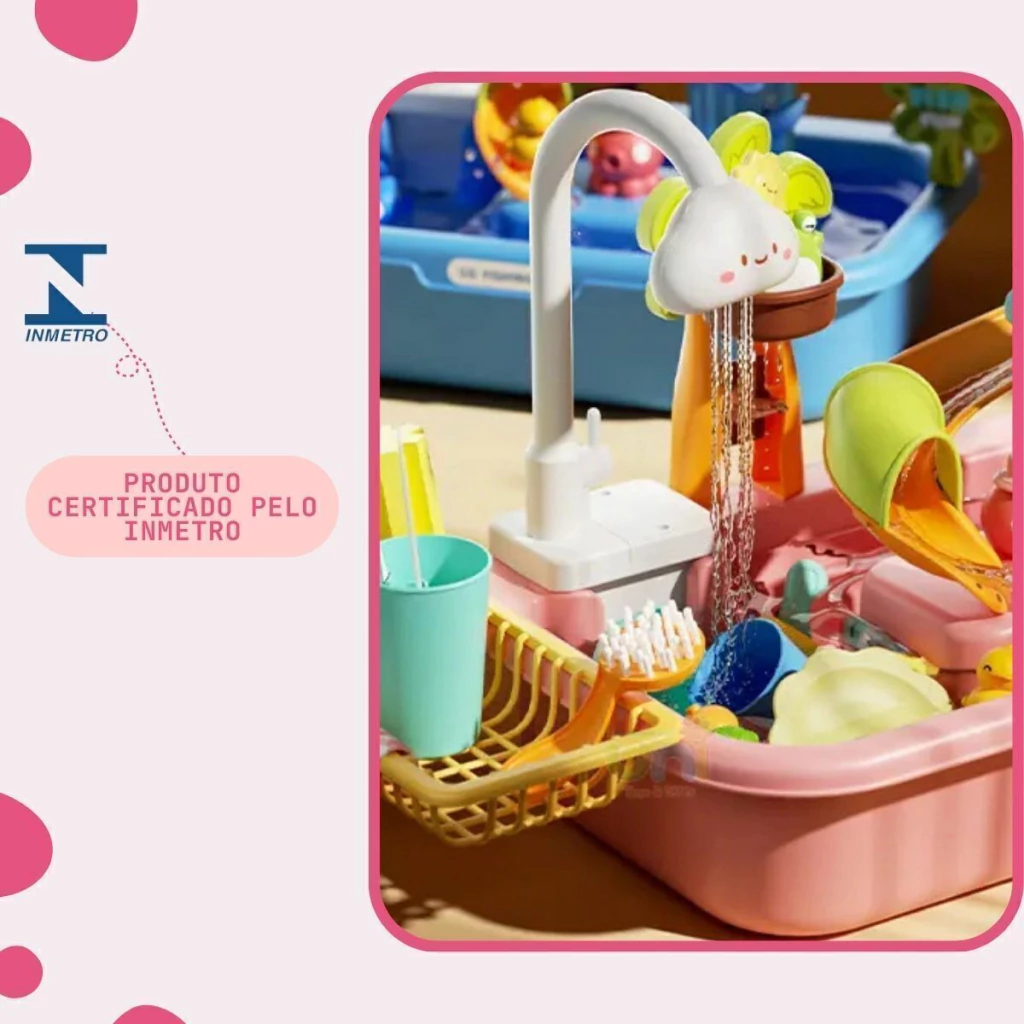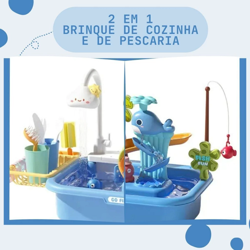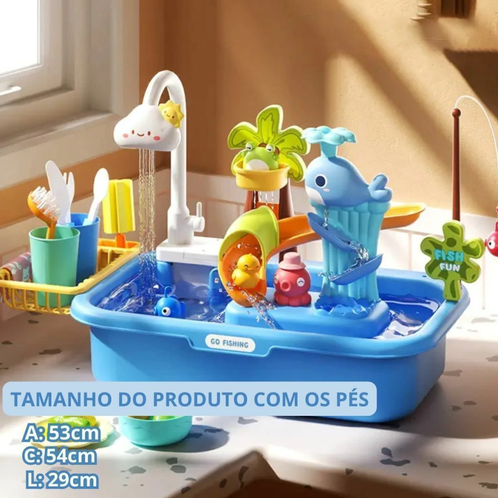 A Mesa Aquática Infantil 2 em 1 é diversão garantida para os pequenos! Pode ser usada com ou sem os pés, e vem equipada com torneira elétrica que jorra água de verdade, pescaria, tobogã de patinho e vários acessórios. Feita com plástico seguro e sem rebarbas, é ideal para estimular a coordenação motora, a criatividade e o faz de conta. Produto certificado pelo INMETRO e indicado para crianças a partir dos 3 anos. Disponível nas cores azul e rosa!