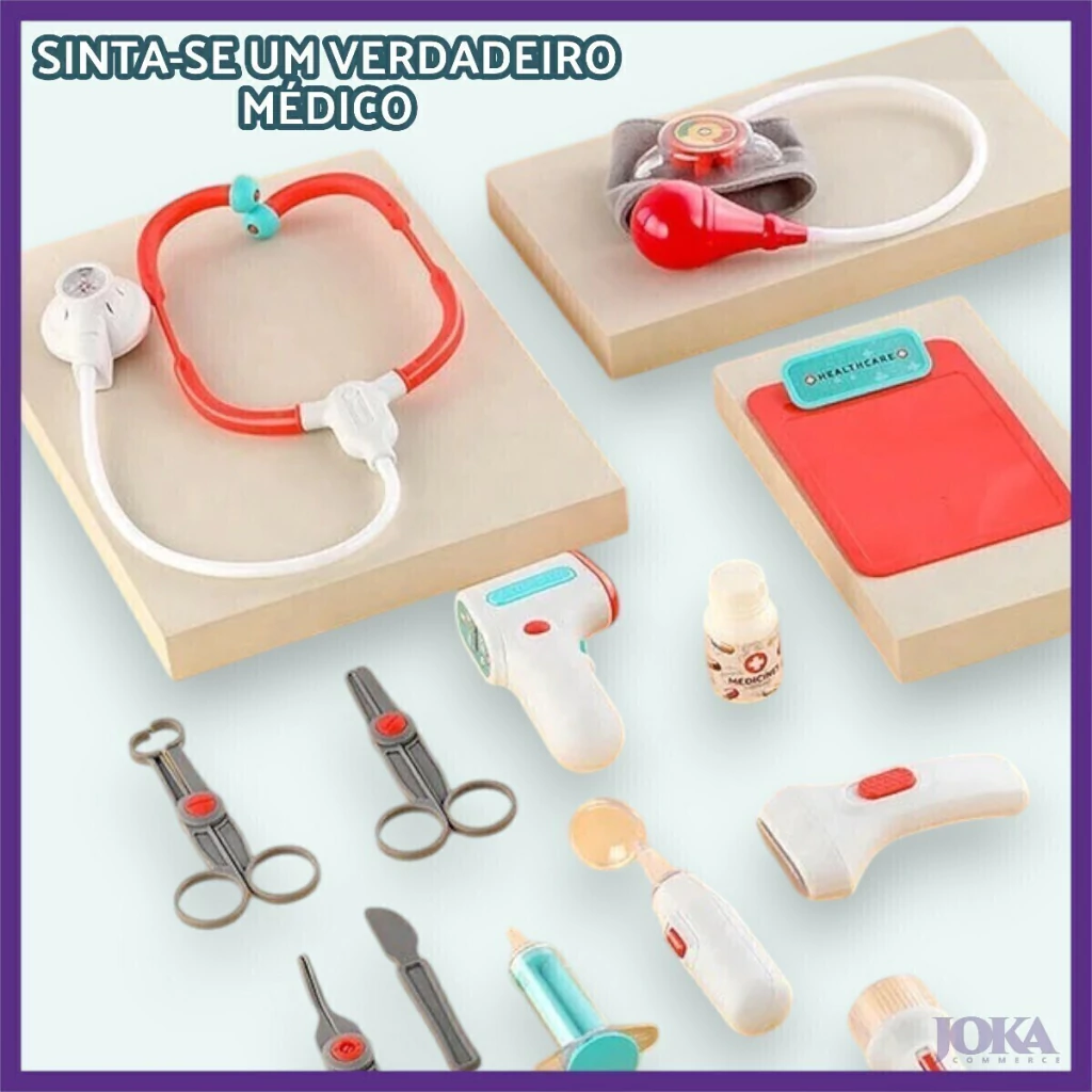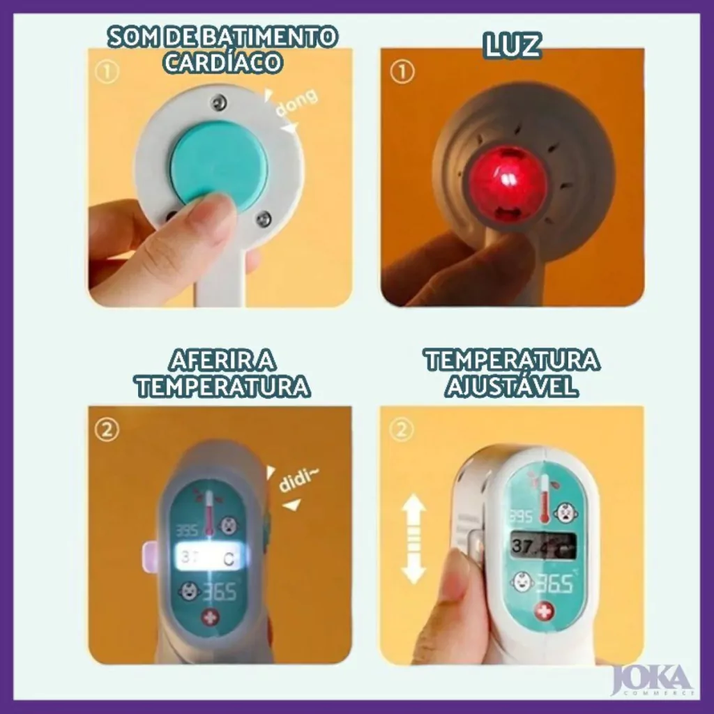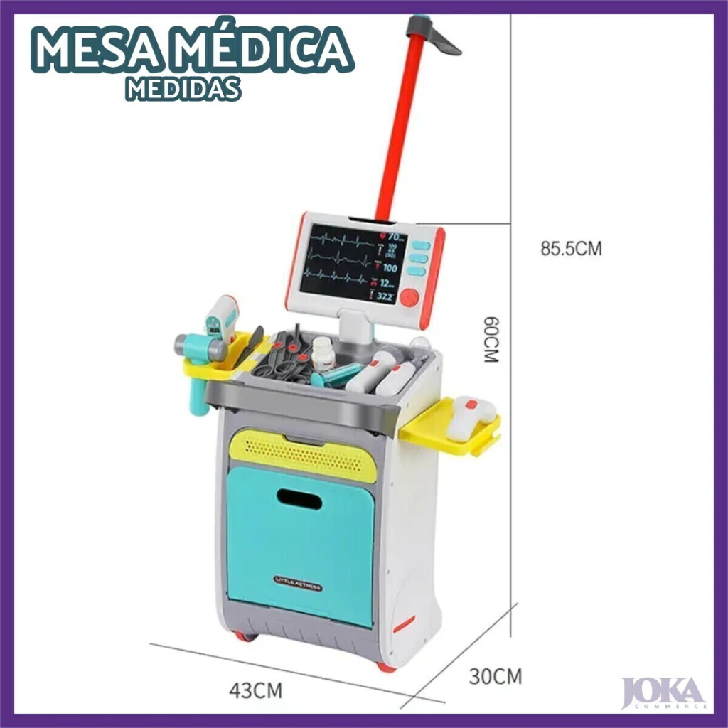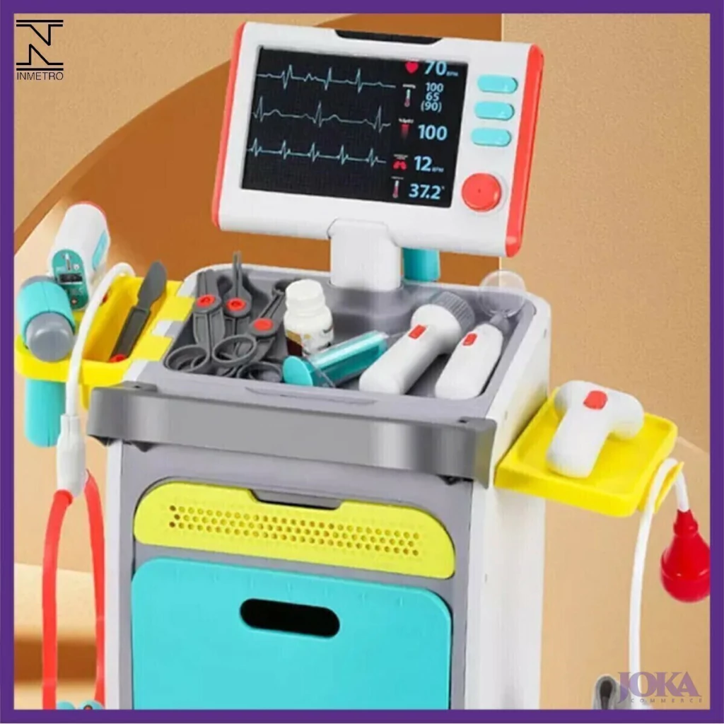 Este incrível carrinho médico oferece uma experiência interativa de brincadeira para crianças que adoram o mundo da medicina. Equipado com um monitor funcional com sons e luzes que simula os batimentos cardíacos, esse brinquedo educativo estimula o aprendizado de forma prática e envolvente. O carrinho possui diversos acessórios médicos, incluindo seringa, estetoscópio, termômetro, martelo de reflexo, além de um compartimento para guardar tudo organizado.