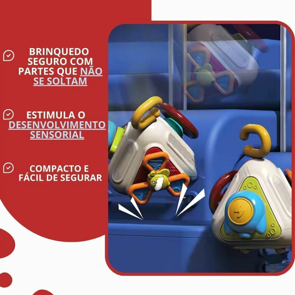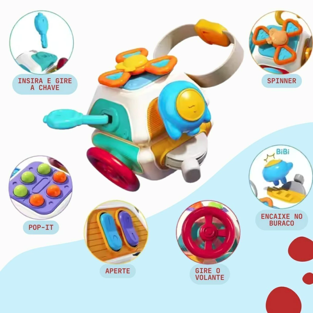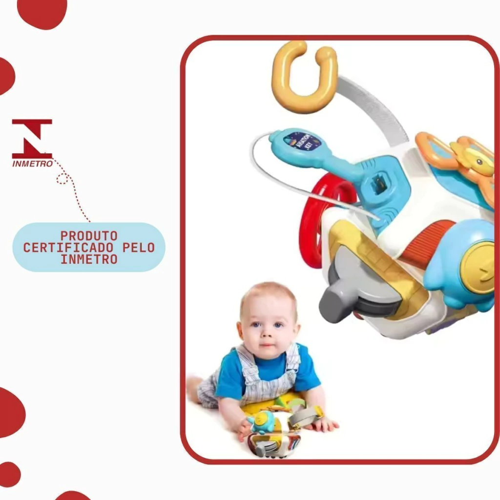 Essa bola de atividades multifuncional vai encantar os pequenos com tantas possibilidades de brincar! A criança pode inserir e girar a chave, rodar o spinner, apertar botões, explorar o pop-it, girar o volante e encaixar formas nos buracos. Cada atividade foi pensada para desenvolver habilidades motoras finas, coordenação entre mãos e olhos, além de promover a curiosidade e a concentração.
