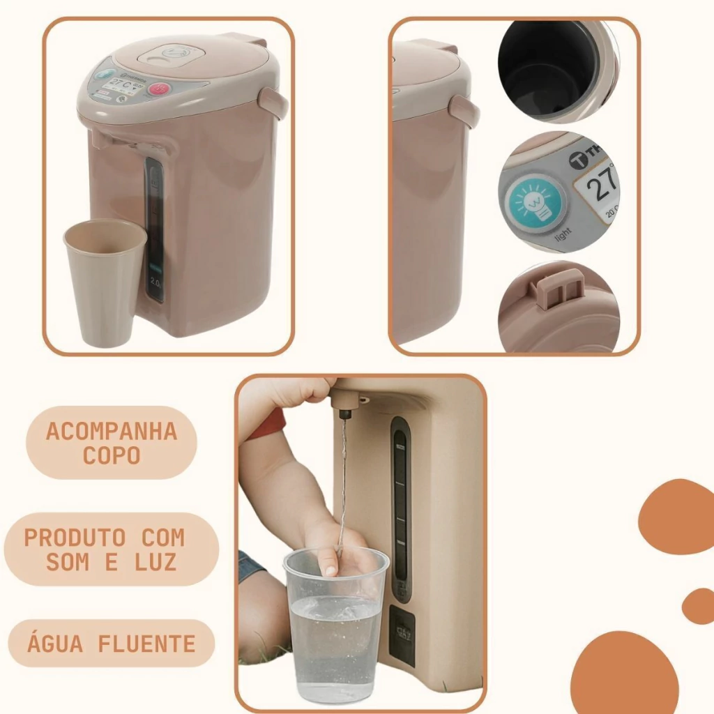 Este encantador eletrodoméstico em miniatura é perfeito para pequenos espaços, proporcionando diversão e aprendizado. Possui um design realista que imita perfeitamente uma bombona de água de verdade.