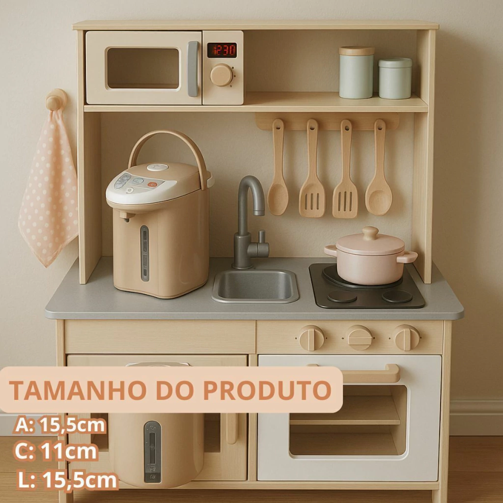 É o brinquedo ideal para brincadeiras de faz-de-conta, além de influenciar as crianças a se interessarem melhor pelos afazeres da casa.