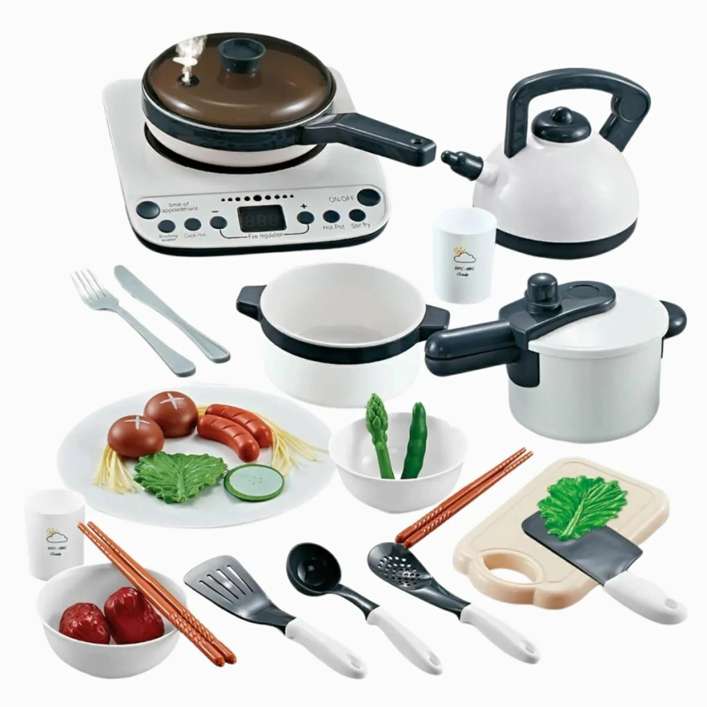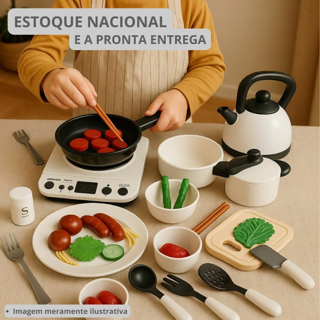 Com este incrível kit de cozinha, a brincadeira de faz de conta vai ficar ainda mais completa e divertida! As crianças podem preparar receitas imaginárias, servir os amigos, organizar a mesa e explorar o mundo da culinária de forma lúdica e segura.